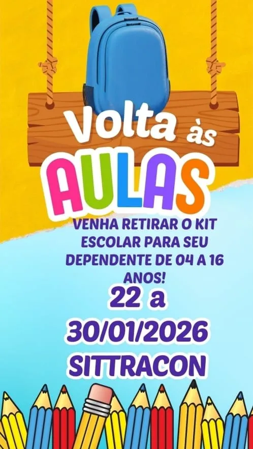 O Sindicato dos Rodoviários de Contagem (SITTRACON) segue investindo no bem-estar das famílias da categoria. Como parte desse compromisso, a entrega do Kit Escolar será realizada entre os dias 22 e 30 de janeiro de 2026, de segunda a sexta-feira, das 8h30 às 16h30, na sede do sindicato.
